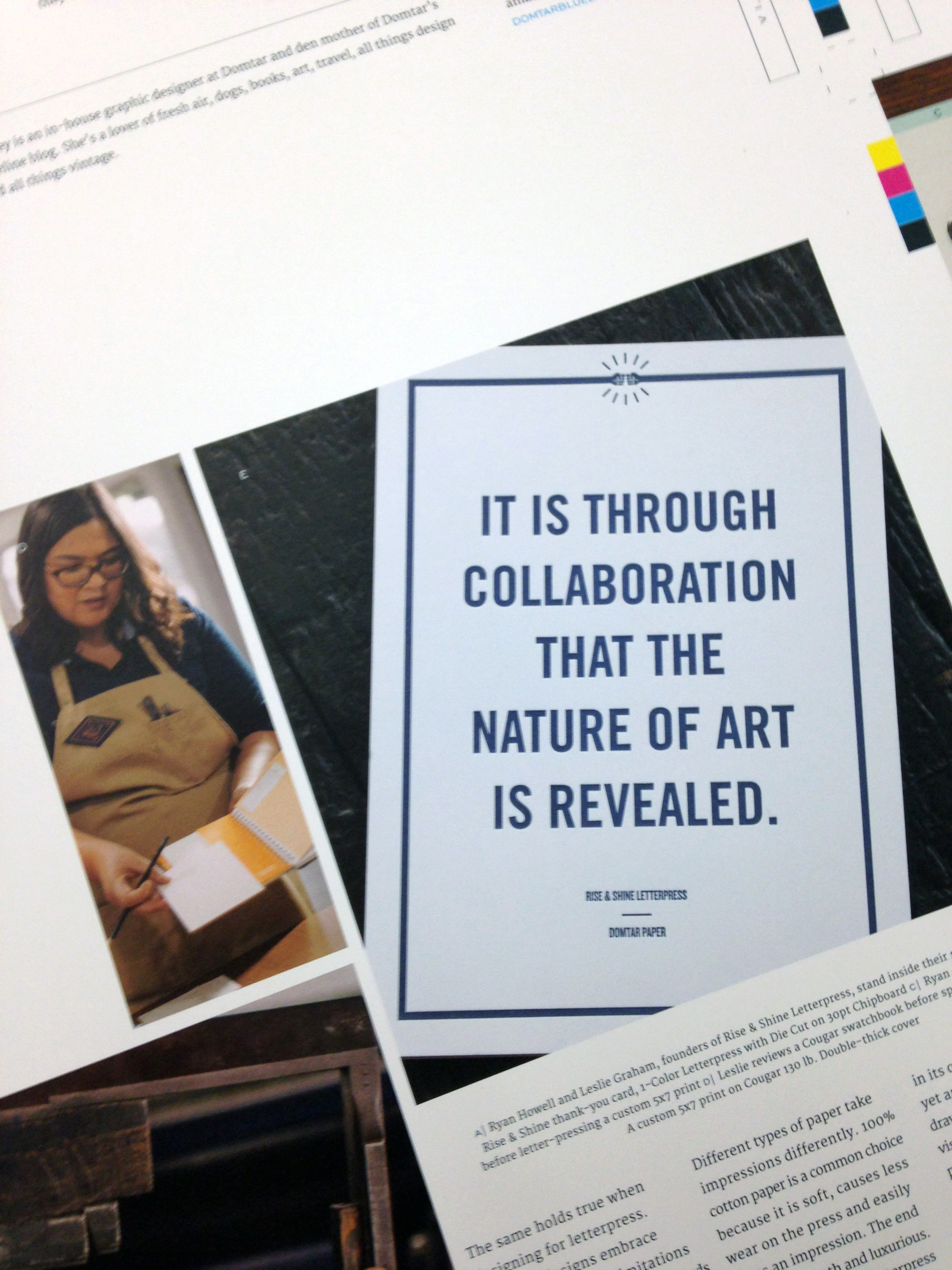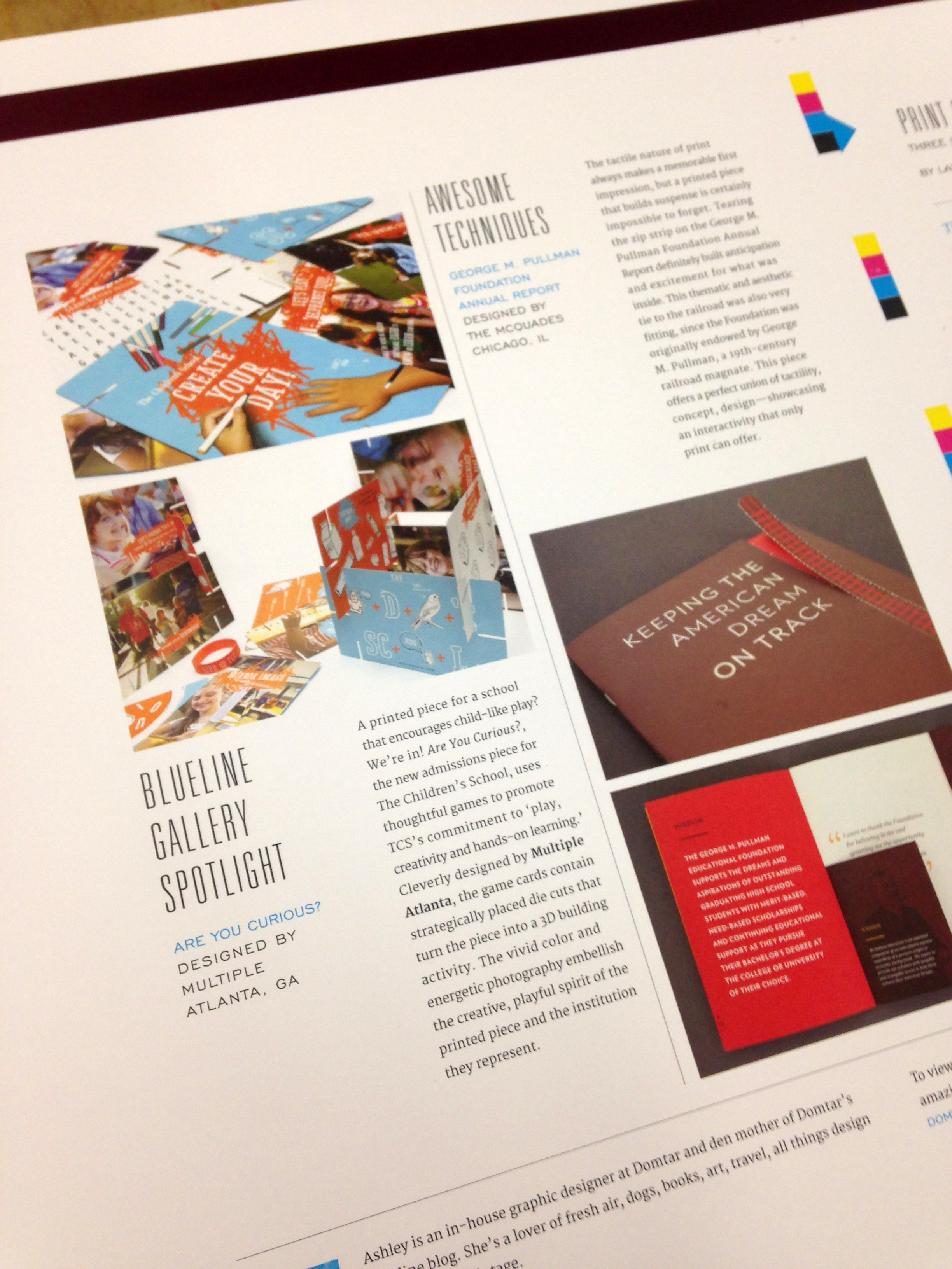 Blueline Magazine…. what can I say? This project, introduced by Vanécia Carr on Monday, is one that I’m particularly excited about. Taking a true labor of love—the Blueline By Domtar website and accompanying Blueline Blog—and converting it into a tangible printed piece is nothing short of exciting. While the creation of a quarterly publication certainly monopolizes quite a bit of our time here at Domtar, we love having the opportunity to take a deeper dive into the subjects, innovations, and personalities we touch on in the Blueline blog. In addition, who with a design background wouldn’t love a regular opportunity to reach out to some of the most inventive and creative commercial printers and graphic designers in North America? Seriously, my job is pretty cool.