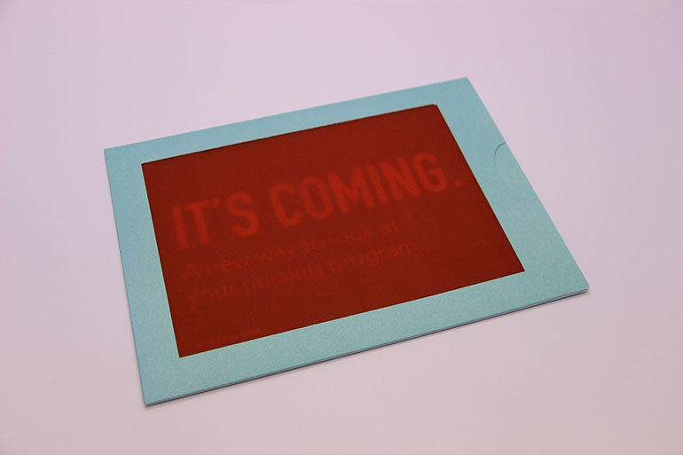 We were able to concept and create a direct mail campaign for ATI Nursing Education that increased awareness of a new predictive product called ATI Pulse. This product allows Nurse Educators to reveal whether or not students are on the right track to pass the NCLEX by utilizing online assessments, analytics and predictive data. Our design solution is a direct reflection of ATI Pulse's ability to accurately reveal students potential for success.When it came to paper selection, we needed to choose something that complimented our translucent red paper and helped us achieve the ‘reveal’ effect. The Lynx Opaque Ultra was a great match for this scenario. It’s similar to the translucent red in the uncoated finish and the color output was vivid and bright. We also worked very closely with our printer and paper representative to explore different paper and ink combinations. They were hugely influential in the success of this project.In the end, this direct mail campaign opened up a lot of new business doors for our client and we couldn’t have been happier with the outcome and the impact of the project.