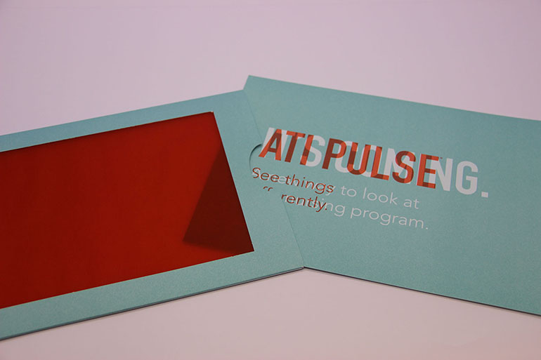 There’s something fascinating about the thrill of discovery, whether you’re learning something new or opening a printed piece that offers more than you expect. I absolutely love the level of interactivity that the ATI Pulse Campaign requires. This fun and exciting brochure and direct mail piece, designed by DMH and printed at Spangle Graphics, take the thrill of print to a new level.