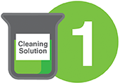 Hamilton offers a Cleaning Solution Concentrate (P/N 18311) that is ideal for Step 1 and can be found on the website. Also.a complete care and use guide can be downloaded by filling out the form to the right at the top of the page.
