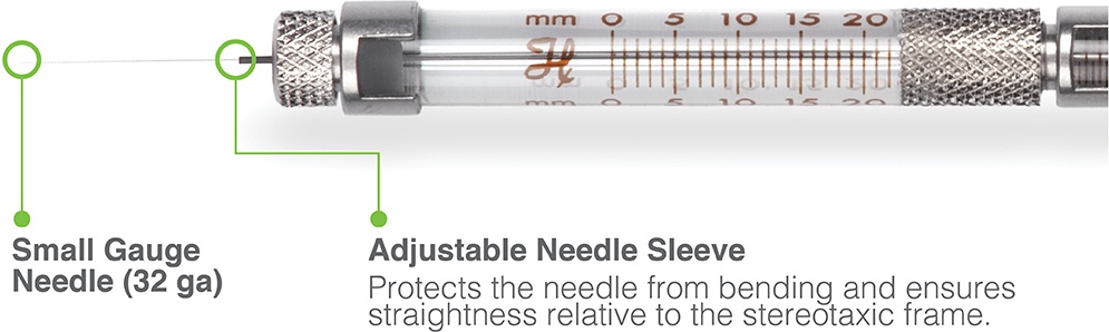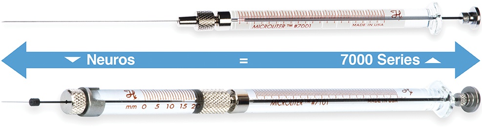Most stereotaxic frames and infusion pumps have been designed with compatibility to the 7000 series syringe so compatibility should not be an issue. Fill out the form at the top of the page to download the Neuros Syringe Datasheet.